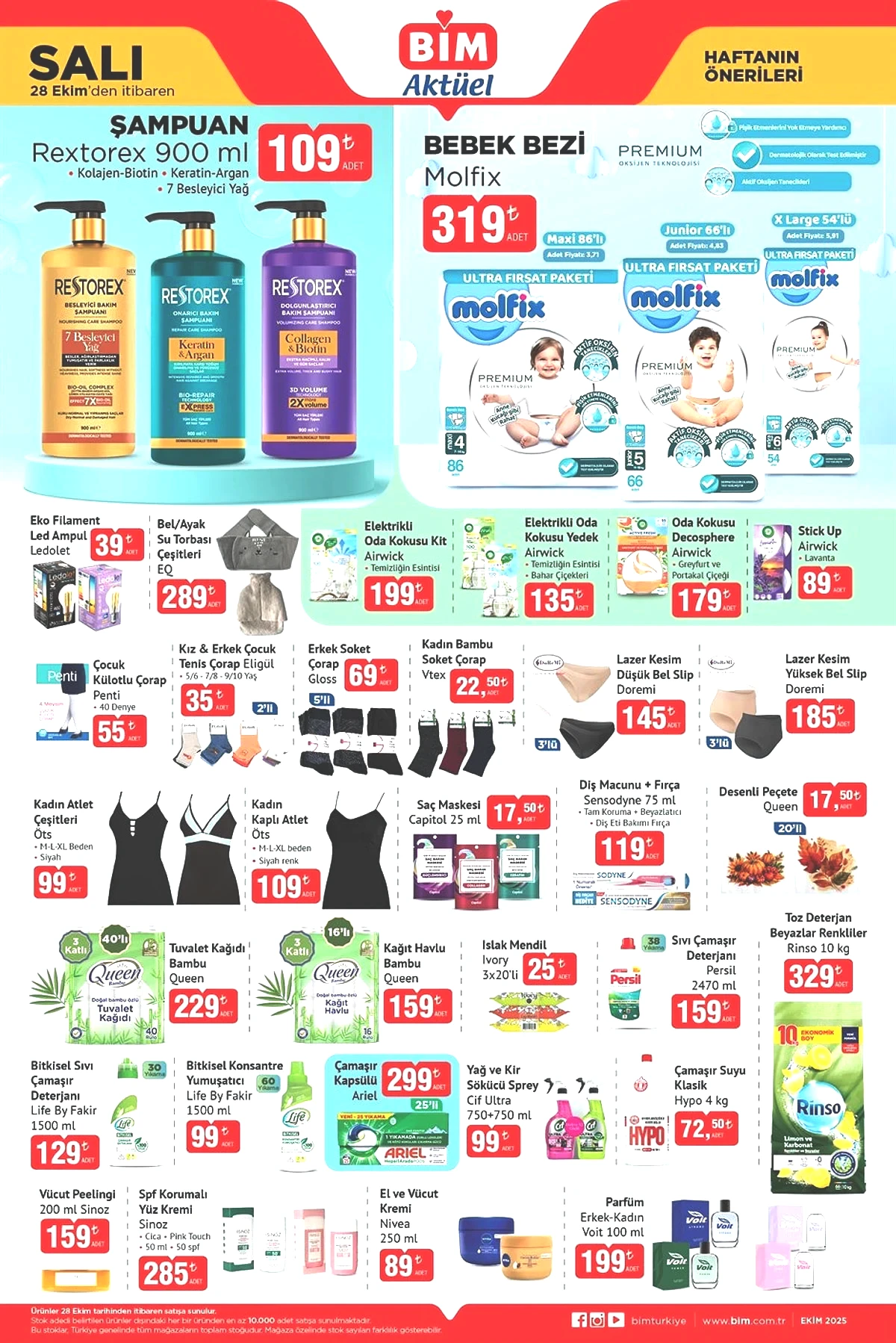 28 Ekim Salı gününden itibaren BİM mağazalarında satışa sunulacak ürünlerin listesi aşağıda verilmiştir: