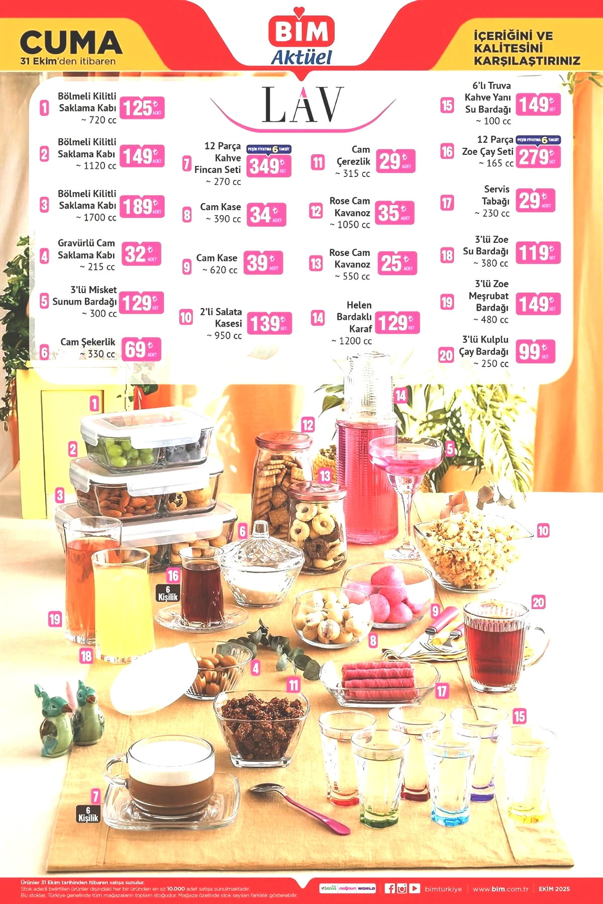 BİM’in cam ve mutfak gereçleri koleksiyonunda bu hafta LAV markalı ürünler öne çıkıyor: